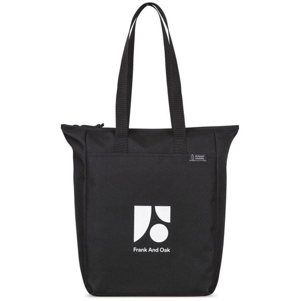 Modern and sustainable, the branded Gemline Black Renew rPET Zippered Tote is a must have for those who like to entertain or maintain a busy schedule. The tote is made from recycled fabric with a front slash pocket for accessories, zippered opening to a large, spacious main compartment, and interior zippered pockets. Great as a container for a new employee welcome gift or to use as a display item at trade shows. Shoulder straps add to the convenience in this kid friendly tote that is ready to be filled with all you need for your busy schedule. Place an order today, these will go fast.