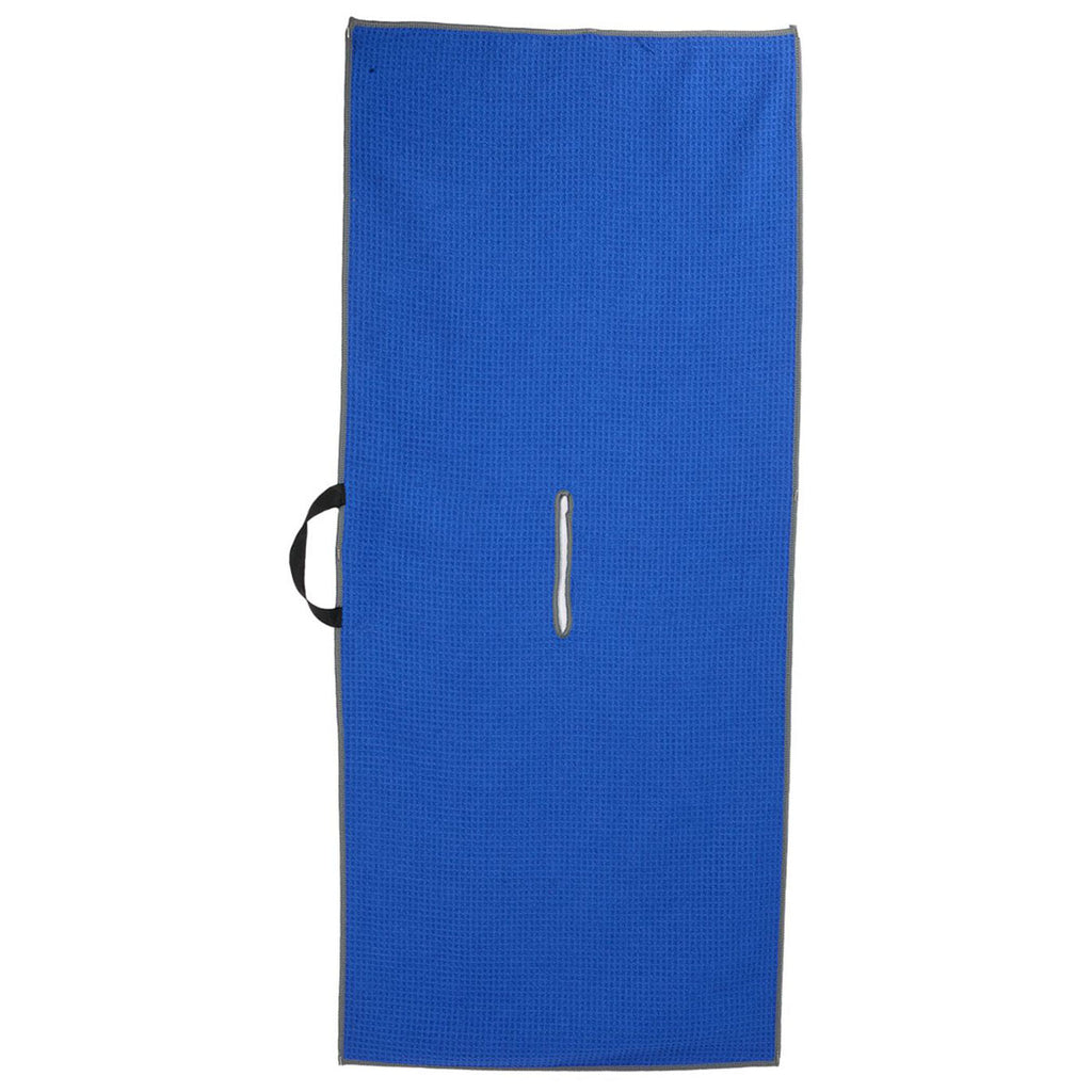 Add a custom logo to the Leed's Royal 17" x 40" RPET Slip-Over Players Towel with a waffle texture and soft hand feel. The highly absorbent towel is great for cleaning, and a large center slit easily fits over the clubs to save space. Perfect for cleaning before and after a shot or an entire round. Sell in a pro shop or specialty shop with ease.The minimum order for this product is 50 pieces.