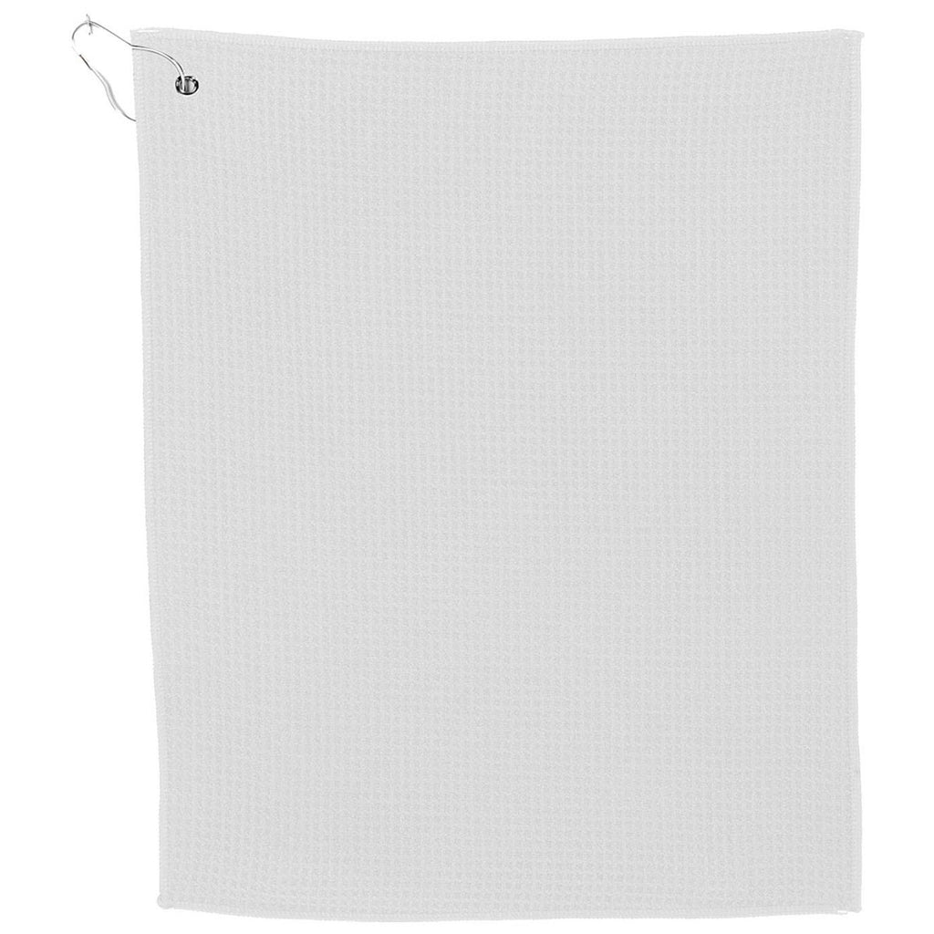 Add your corporate design to the Leed's White 15" x 18" RPET 200g Microfiber Waffle Towel to sell at your pro shop or gift to the golfers in your life. The convenient waffle towel is sized for on-course cleaning and drying, while the metal grommet and hook can easily be attached to your golf bag for fast access.The minimum order for this product is 100 pieces.