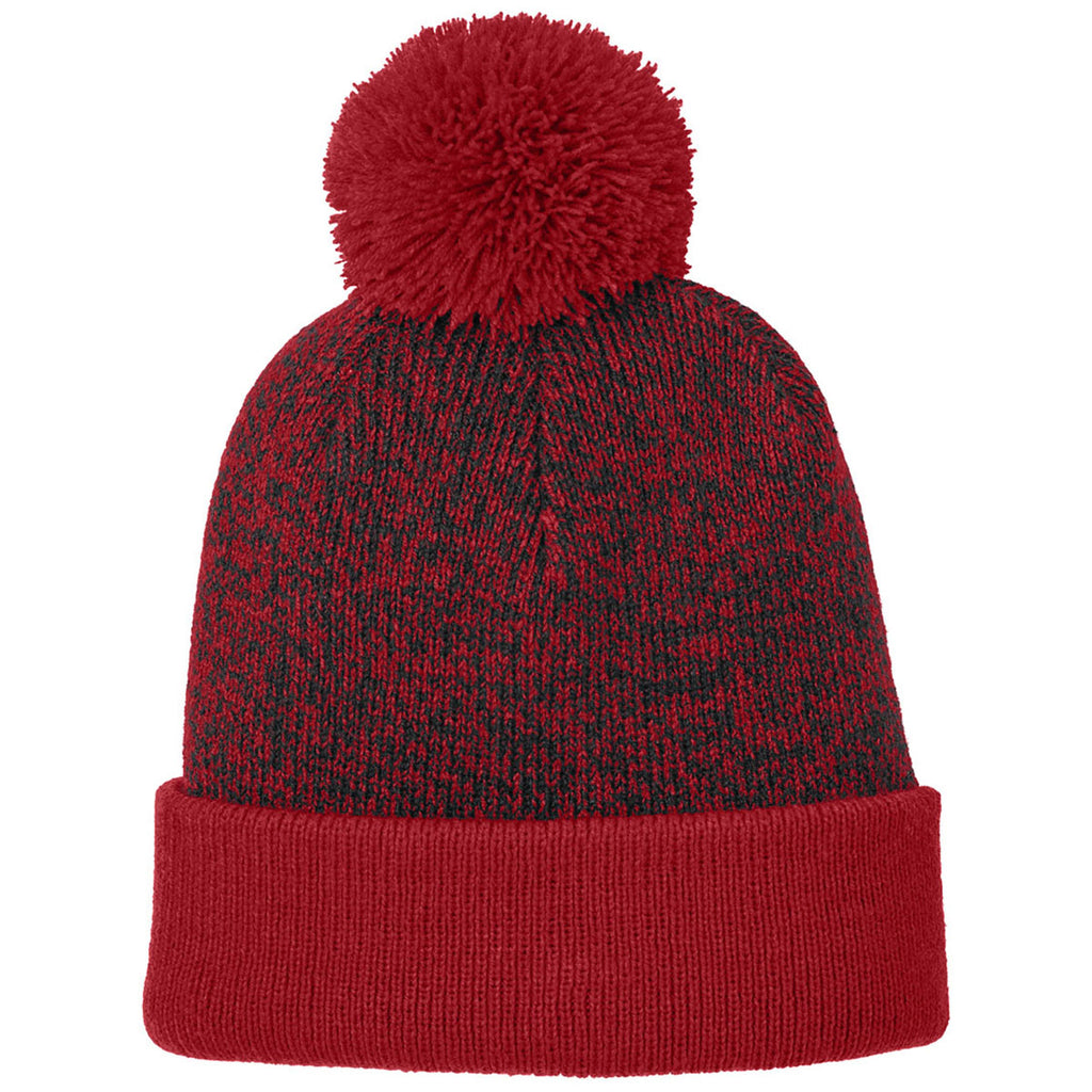 Sport-Tek Deep Red/Black Halftime Heather Pom Beanie