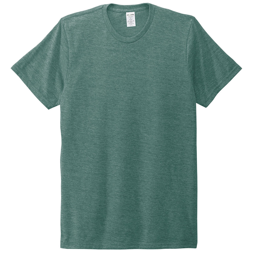 Screen print will pop on the Allmade Unisex Deep Sea Green Tri-Blend Tee with your choice of design and location. This sustainable clothing is a must have for most wardrobes because it is both eco-friendly and comfortable. Easy to wear alone or layer as needed, this recycled apparel is made from sustainable materials that are the equivalent of up to six recycled plastic water bottles. With a rib knit collar, side seams, and tear away label, this tee can go from a morning run to a day spent with families and home again with ease. Made for durability, this tee will make your custom logo stand out whether used as a custom gift or employee apparel.