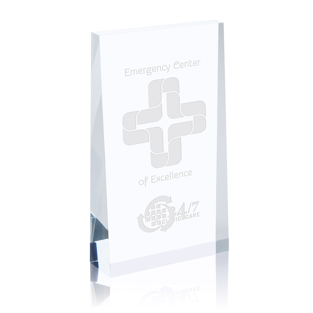 - This freestanding acrylic award has a classic yet modern look to it. At only 5" tall, it can easily be displayed in your home or office.