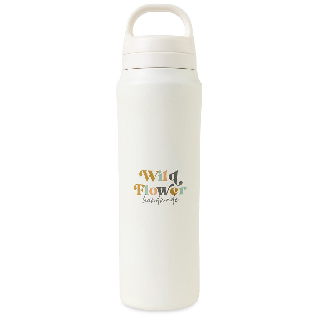 Aviana Marshmallow Rowan Recycled Water Bottle - 16 Oz. with a custom logo creates a cute product option to share with friends, family, and customers. The smaller bottle is great for short hikes, school, or the office to help you stay hydrated throughout the day. The convenient top handle allows this to be clipped to a backpack or tote as needed.