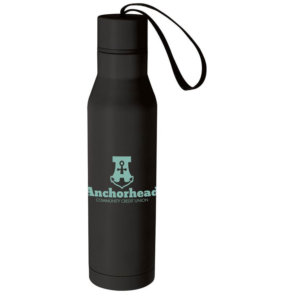 A unique design makes this BIC Black Vacuum Insulated Bottle with Carry Loop - 18 oz. unlike anything you have seen before. Along with double-wall vacuum insulation, it also comes complete with a built-in carry loop. The cool, matte exterior also will provide a perfect blank canvas for your company's custom logo or design.
