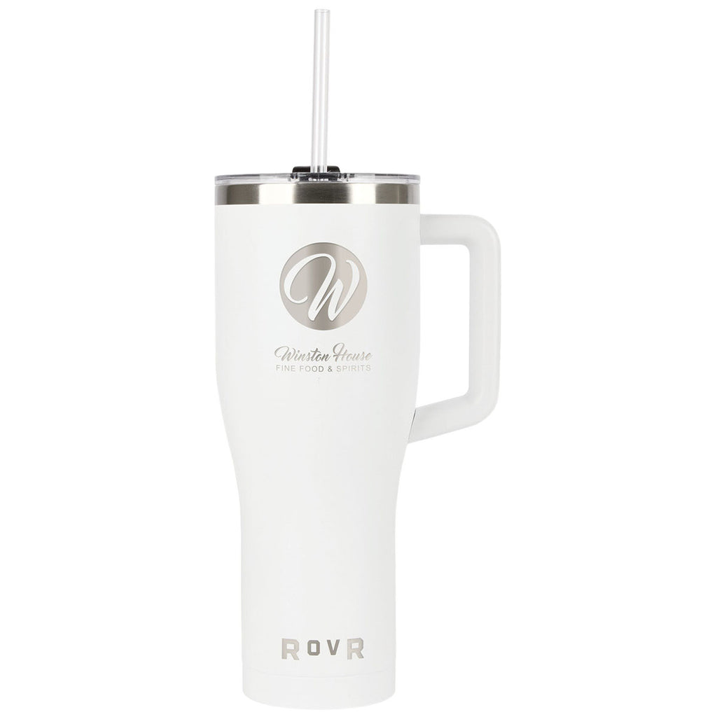 The RovR White 40 oz. Vacuum Insulated Travel Tumbler makes a bold custom statement for hydration-focused promotions or resale. With a large capacity, straw lid, and durable handle, it's built for all-day sipping. Whether for fitness enthusiasts, outdoor workers, or commuters, this tumbler delivers lasting utility and branding power.The minimum order for this product is 12 pieces.