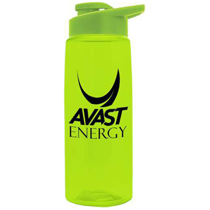 Garyline Transparent Lime Green Flair Tritan Bottle with Drink-Thru Lid - 26 oz.The minimum order for this product is 100 pieces.
