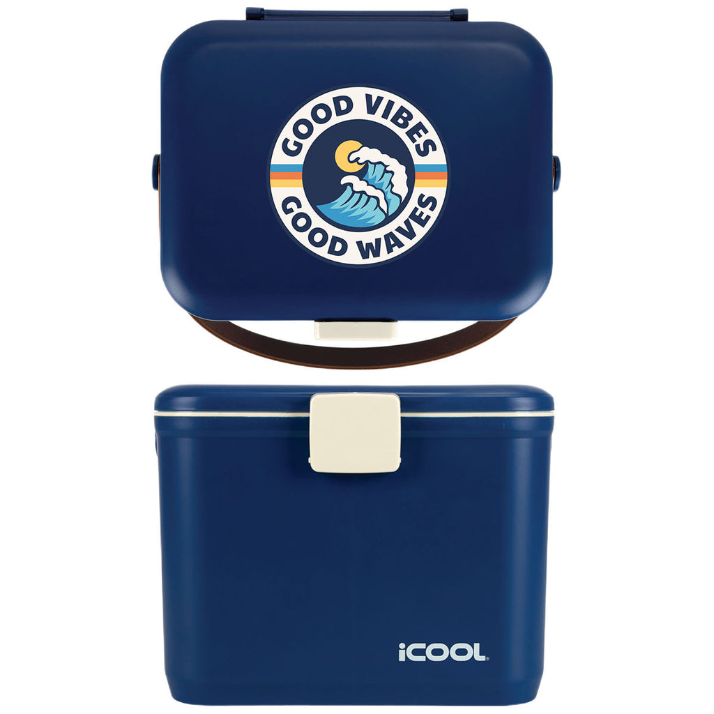 The iCOOL Navy Hale 18-Can, 10.5 Qt Hard Sided Cooler brings rugged custom performance to outdoor teams, tailgates, or summer giveaways. With a durable shell and foam insulation, it holds ice for hours. The carry handle and logo-ready lid make it ideal for brand impressions that stick.The minimum order for this product is 12 pieces.