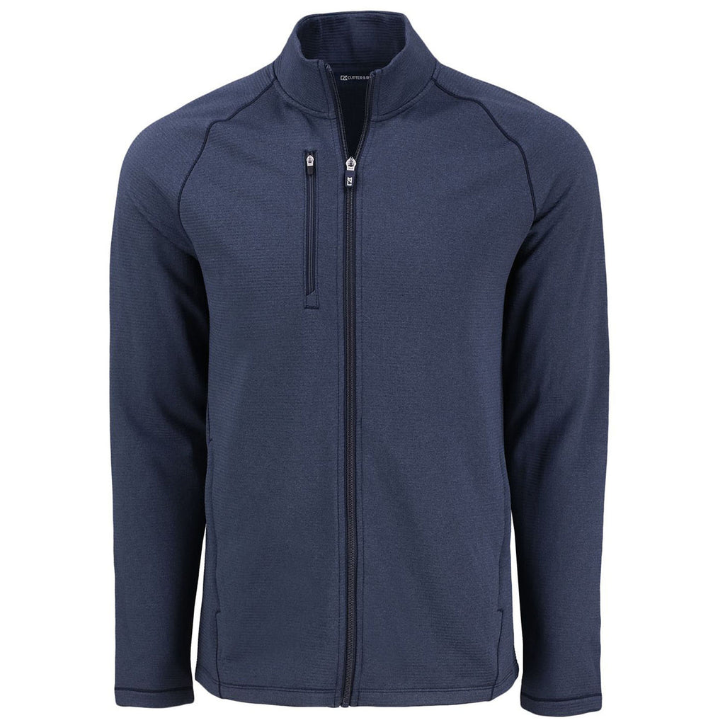 Cutter & Buck Men's Navy Blue Heather Peshastin Fleece Recycled Full Zip Jacket