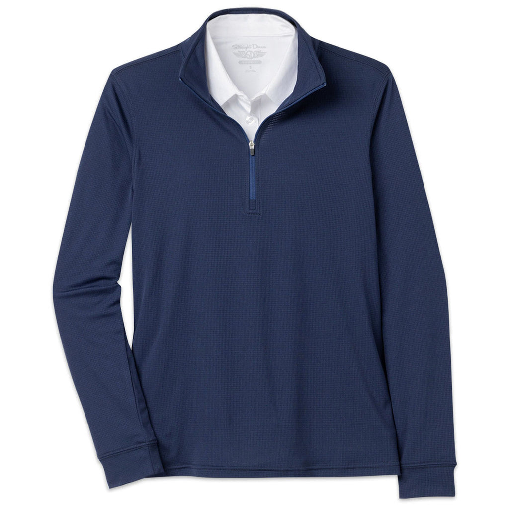 For a polished corporate layering piece, the Straight Down Women's New Indigo Aero Quarter Zip offers lightweight warmth and comfort. The soft, stretchy fabric moves easily and keeps you cozy without bulk. Its contoured fit and quarter-zip collar make it a versatile option for cool mornings, office travel, or branded apparel programs.