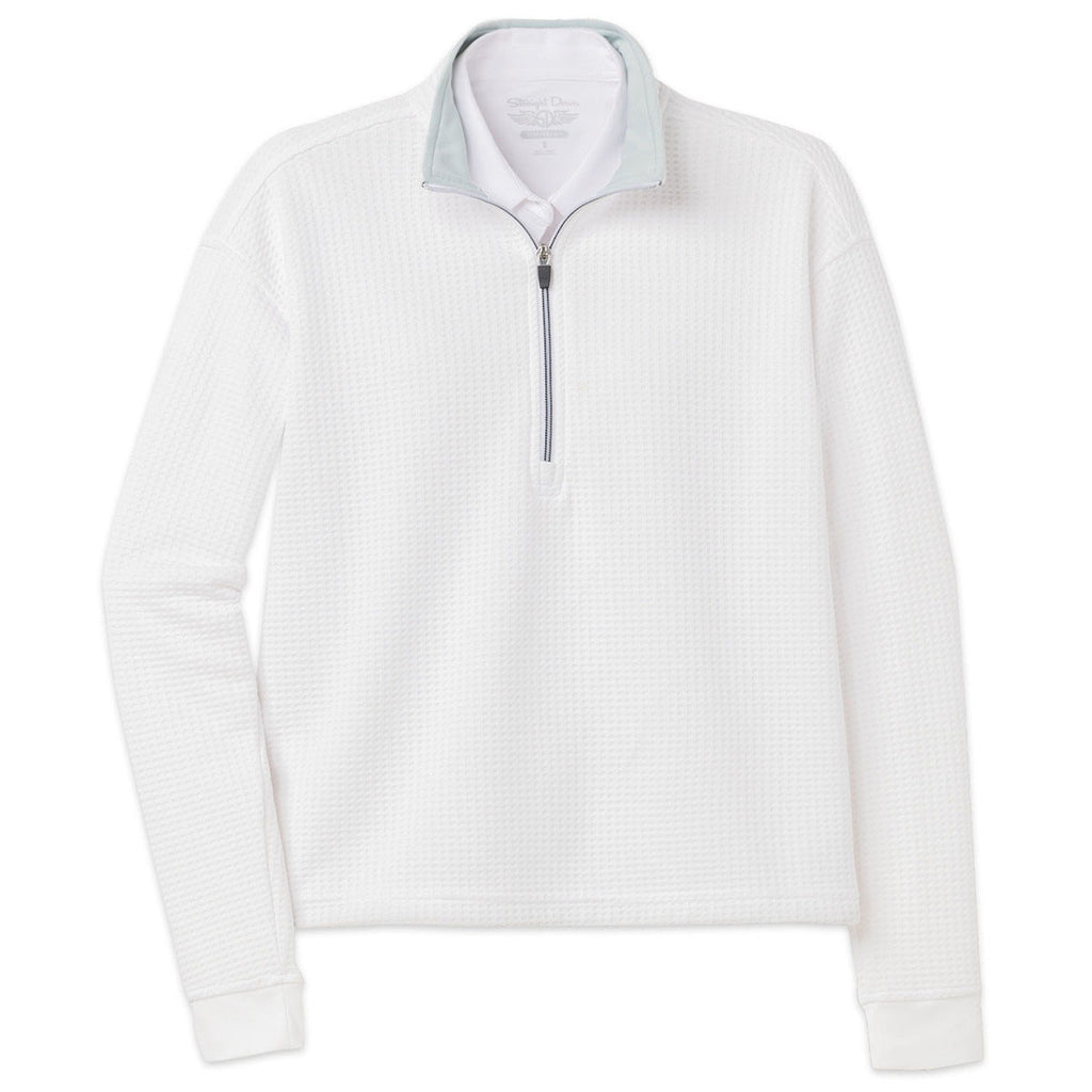 Designed with comfort and movement in mind, the Straight Down Women's White Opal Half Zip fits seamlessly into any custom apparel collection. Lightweight and breathable, it layers well for travel or cool-weather outings. The relaxed fit and mock neck add casual sophistication, making it a go-to for active or branded wear.Highlights