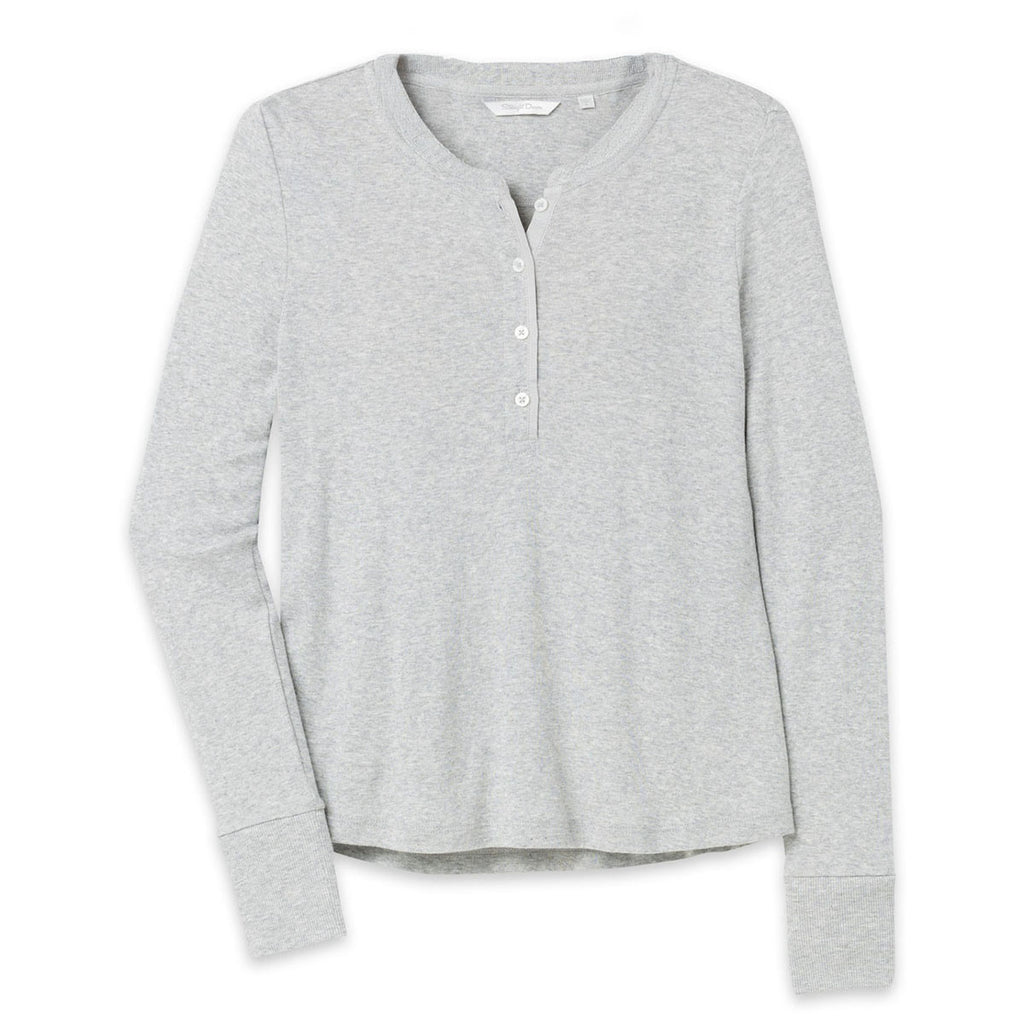 Add a stylish touch to your custom wardrobe with the Straight Down Women's Light Grey Abbie Henley. This top blends modern design with casual comfort, featuring a soft fabric blend and flattering cut. The button placket and curved hem elevate its look, making it perfect for casual Fridays, team branding, or weekend wear.