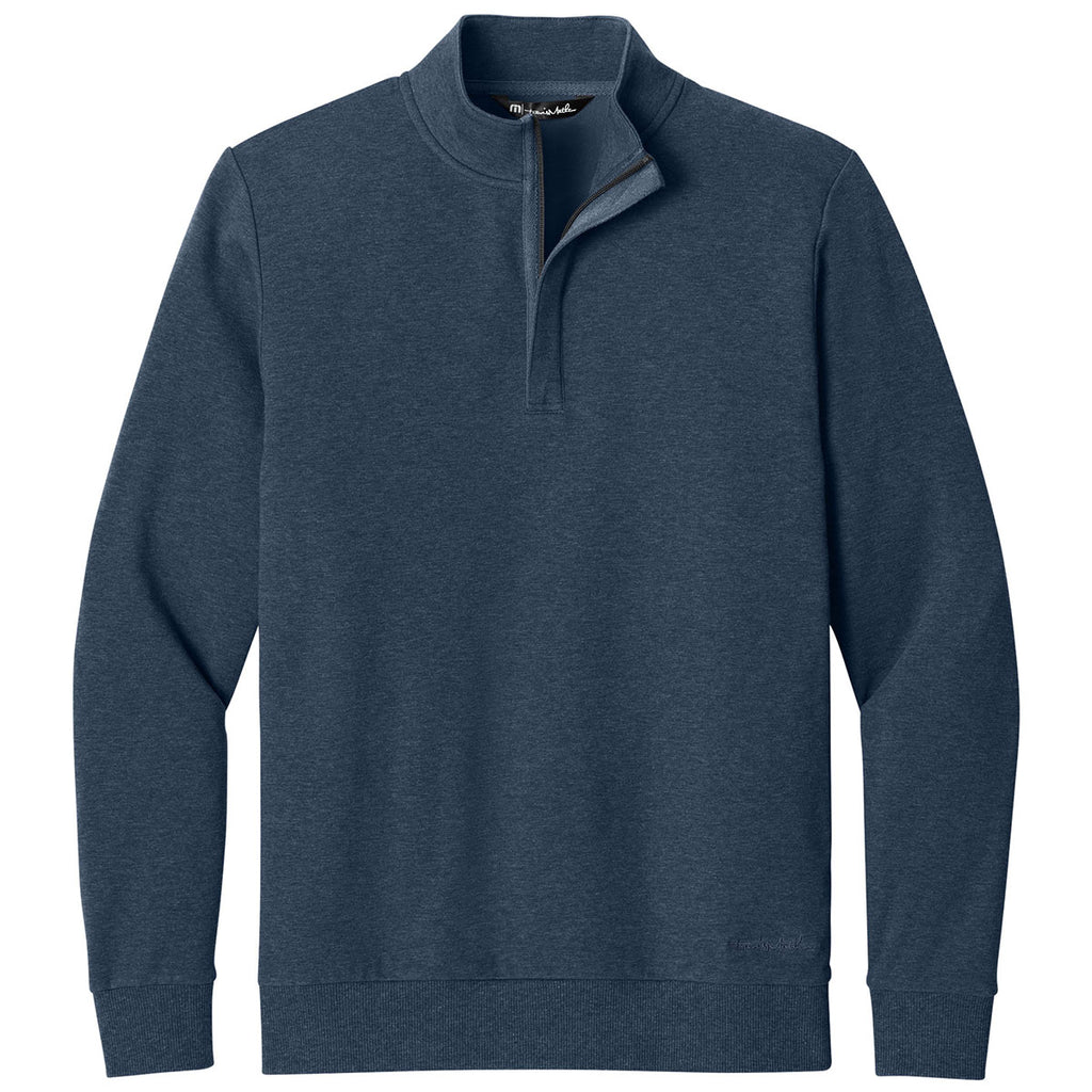 TravisMathew Men's Blue Heather Ocean Villa 1/4-Zip pairs refined design with corporate-ready appeal. Crafted with soft, wrinkle-resistant fabric, it's perfect for travel, office layering, or golf outings. Custom embroidery elevates the clean look, making it an excellent choice for branded apparel. Its modern style and lightweight comfort ensure employees, clients, or event participants will reach for it often.