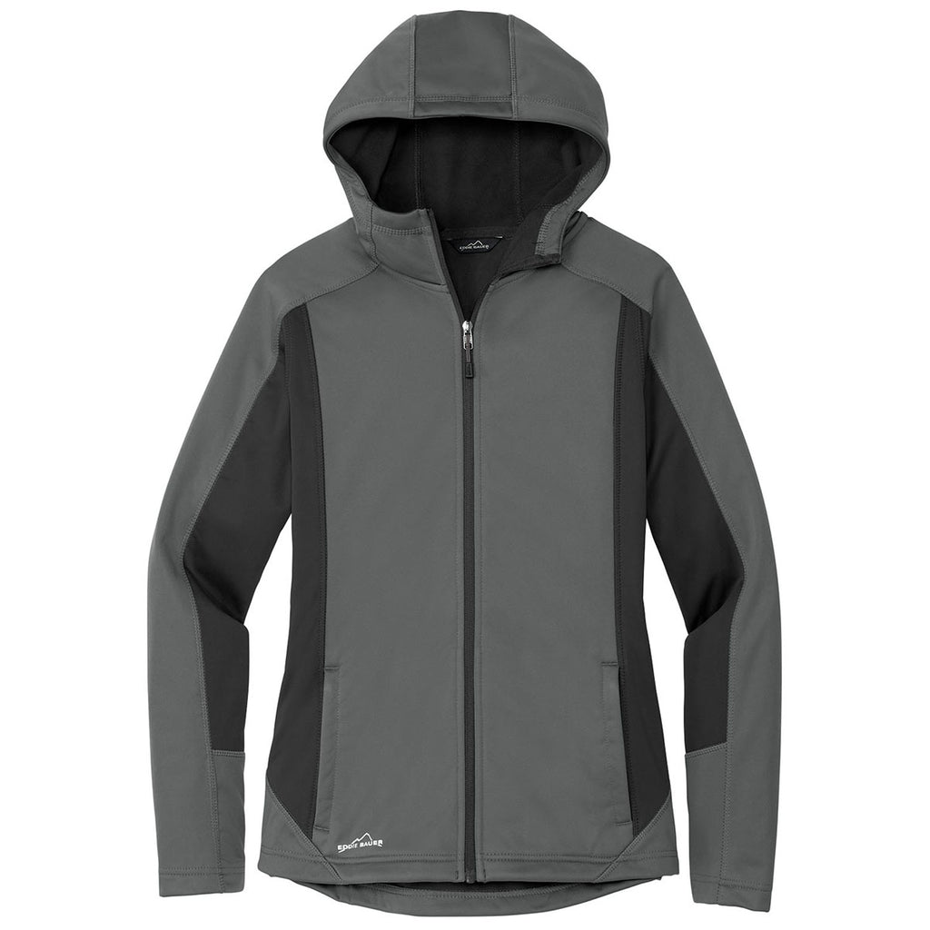 Give the logoed Eddie Bauer Women's Metal Grey/Grey Steel Trail Soft Shell Jacket to each member of your successful team. The sleek embroidered corporate gift includes a large imprint area to attach your corporate logo. Designed with 100% rugged polyester knit shell and DWR coating, the jacket also receives a water-resistant laminated film to prevent Mother Nature from dampening your day. The micro fleece brushed interior feels smooth to keep you feeling fresh all-day long. Attach the hood to bundle up when the weather takes a turn for the worse. Your team will appreciate having a jacket that they actually want to wear both to the office and after hours.