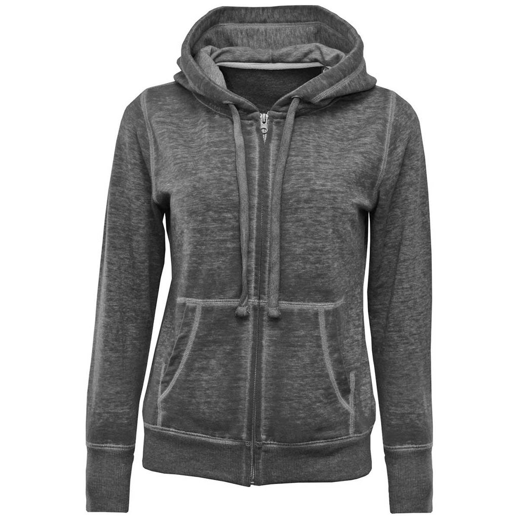 The BAW Women's Vintage Black Burn-Out Full Zip Jacket brings style and warmth together in one eye-catching outerwear piece. Available in six creative colors, the women's full-zip jacket offers exceptional features, such as a 55% cotton/45% polyester blend material, acid wash burnout-style fleece, flatlock stitching, matching drawcord, split front pockets, and ribbed cuffs and waistband. Add your company logo in embroidery to the jacket and you have a corporate apparel gift you can hand out at upcoming trade shows and recruiting events or provide to your staff as employee apparel.Corresponding Men's Style: BAW Men's Vintage Black Burn-Out Full Zip Jacket