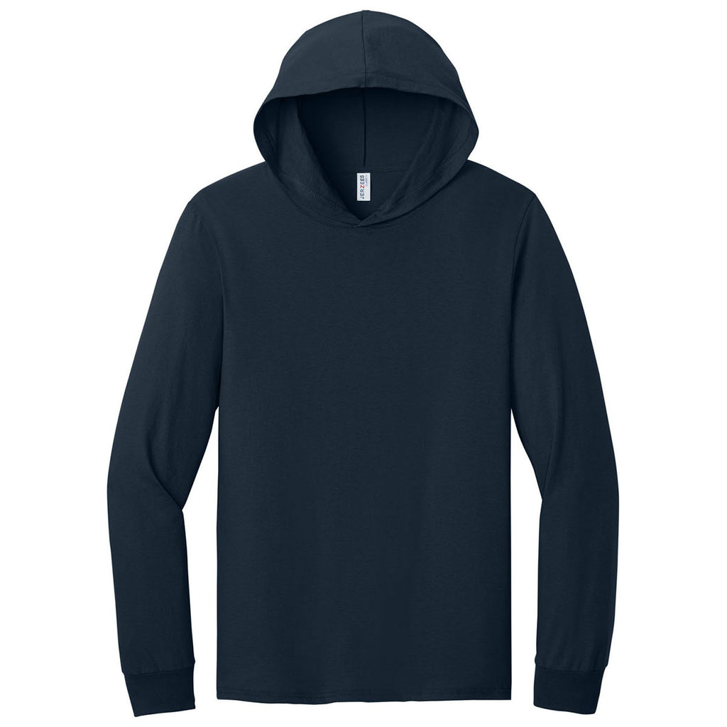 Jerzees Classics Unisex J. Navy Cotton Long Sleeve Hooded T-Shirt with a custom logo delivers a laid-back yet durable design. Soft cotton fabric provides ultimate comfort, making it perfect for casual outings or layering in colder weather. The hood adds extra warmth and versatility, while the long-sleeve style is ideal for a relaxed yet stylish look that never goes out of fashion.