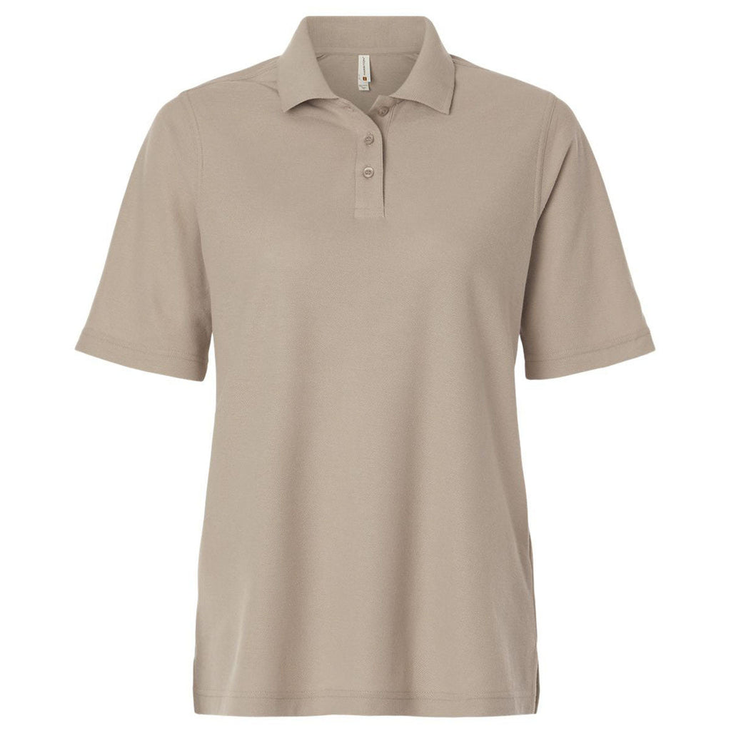Harriton Women's Khaki Maverick CVC Pique Polo offers a tailored, comfortable fit, enhanced by a durable CVC blend, and is great for embroidery or corporate branding. Its breathable pique texture keeps wearers comfortable throughout the day, making it strong for office uniforms, event apparel, or retail-friendly merchandise.