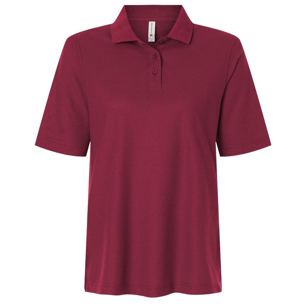 Harriton Women's Wine Maverick CVC Pique Polo offers a tailored, comfortable fit, enhanced by a durable CVC blend, and is great for embroidery or corporate branding. Its breathable pique texture keeps wearers comfortable throughout the day, making it strong for office uniforms, event apparel, or retail-friendly merchandise.