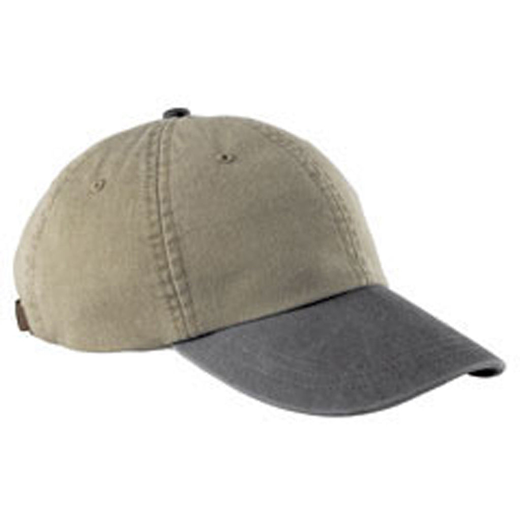 Ever wonder about all of the little details that go into making a great cap? Details like 100% garmet-washed cotton twill? Or a six-panel, unstructured low profile makeup? The way the leather back strap tucks away so that it's functional without being in the way? Those are the same details that make up this Adams Men's Khaki/Black 6-Panel Low-Profile Washed Pigment-Dyed Cap, so it's only right that if you like a high-quality, well-constructed cap, you might want to consider this as your go-to option for branding your promotional items. Use our custom embroidery process and you can bring this level of detail to your own company.Highlights