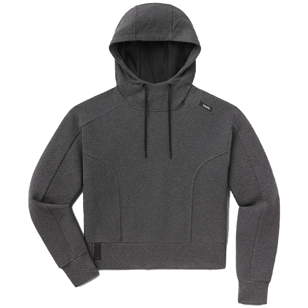 With custom embroidery, UNRL Women's Charcoal Elevation Hoodie creates a new level of comfort for travel, lounging, or working out. The midweight hoodie has a fitted waist, 4-way stretch, and thumb holes to enjoy a clean look no matter what your day may hold or what activity level you need to take on. Give as a gift or add to your apparel line.Highlights
