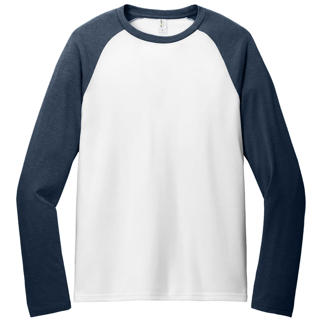 Allmade Unisex Rebel Blue/Bright White Tri-Blend Long Sleeve Colorblock Raglan delivers custom style for corporate teams and eco-conscious consumers alike. Its tri-blend fabric feels incredibly soft while holding shape through repeated wear. With its classic raglan design and color block appeal, this tee transitions seamlessly from branded group apparel to casual weekend wear.