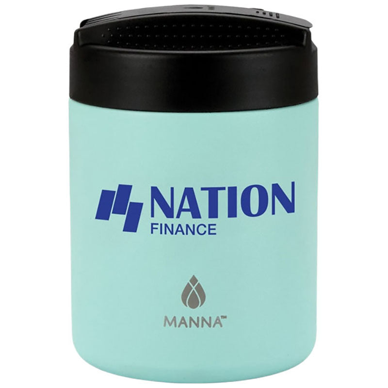 The Manna Aqua Nomad 16 oz. Double Wall Stainless Food Jar is a practical custom container for hot or cold meals on the go. Vacuum insulation keeps food fresh for hours, while the compact design fits easily in bags. Ideal for wellness programs, employee lunches, or retail, it merges convenience with eco-friendly branding.