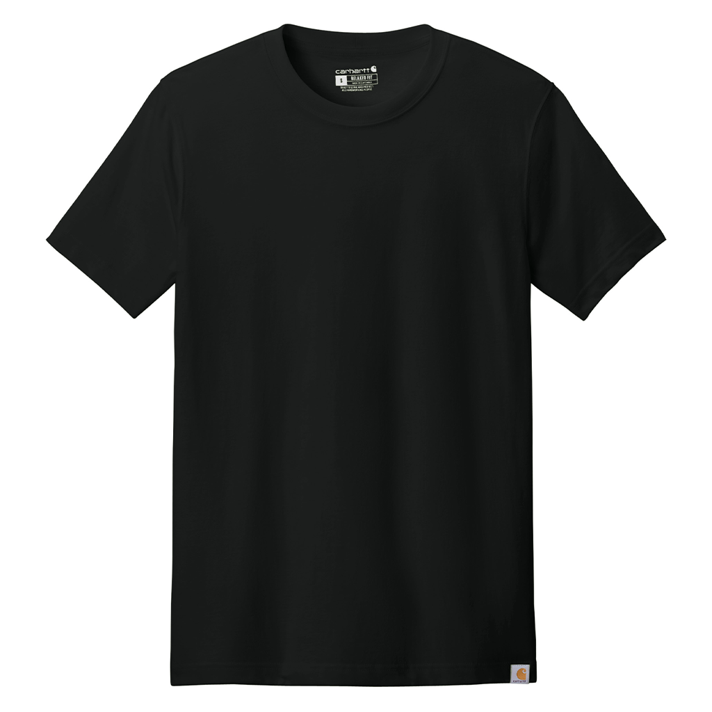 The corporate logoed Carhartt Men's Black Short Sleeve T-Shirt combines rugged durability with all-day comfort. Crafted from heavyweight cotton, it stands up to demanding tasks while offering a breathable feel. Ideal for hard workers or those needing a dependable casual option, this t-shirt ensures long-lasting wear without compromising comfort or style.