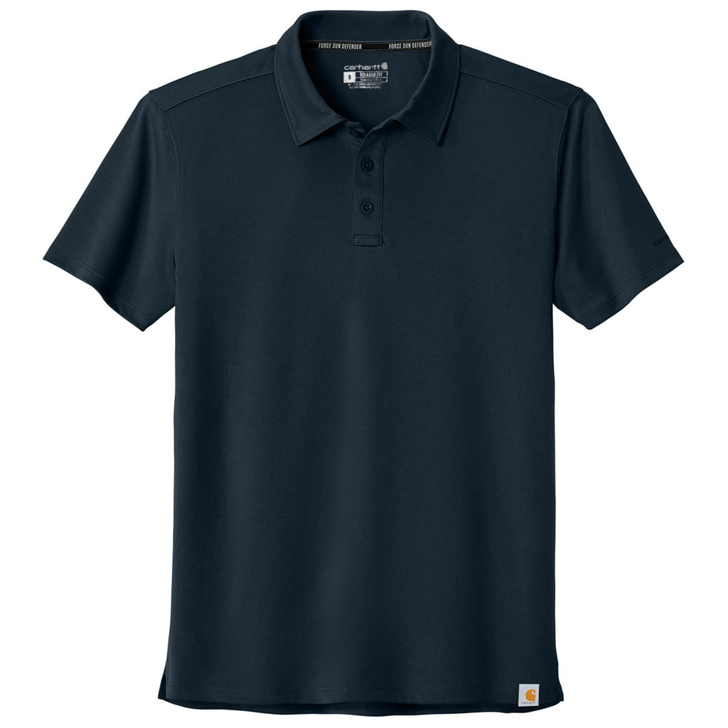 Carhartt Men's Navy Force Sun Defender Polo with a corporate logo combines rugged durability with sun protection technology. Crafted from lightweight, moisture-wicking fabric, it keeps you cool and comfortable during long hours outdoors. This polo is ideal for workers in the field or anyone needing reliable UV protection without sacrificing style and mobility.This product can only ship within the United States and Canada.