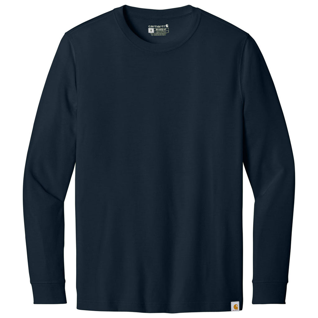 The custom Carhartt Men's Navy Long Sleeve T-Shirt delivers durability and comfort for those who need dependable workwear. Made from sturdy cotton, it's built to withstand tough conditions, while the long sleeves provide extra coverage. Whether working outdoors or tackling DIY projects, this shirt offers reliability and comfort throughout your day.This product can only ship within the United States and Canada.