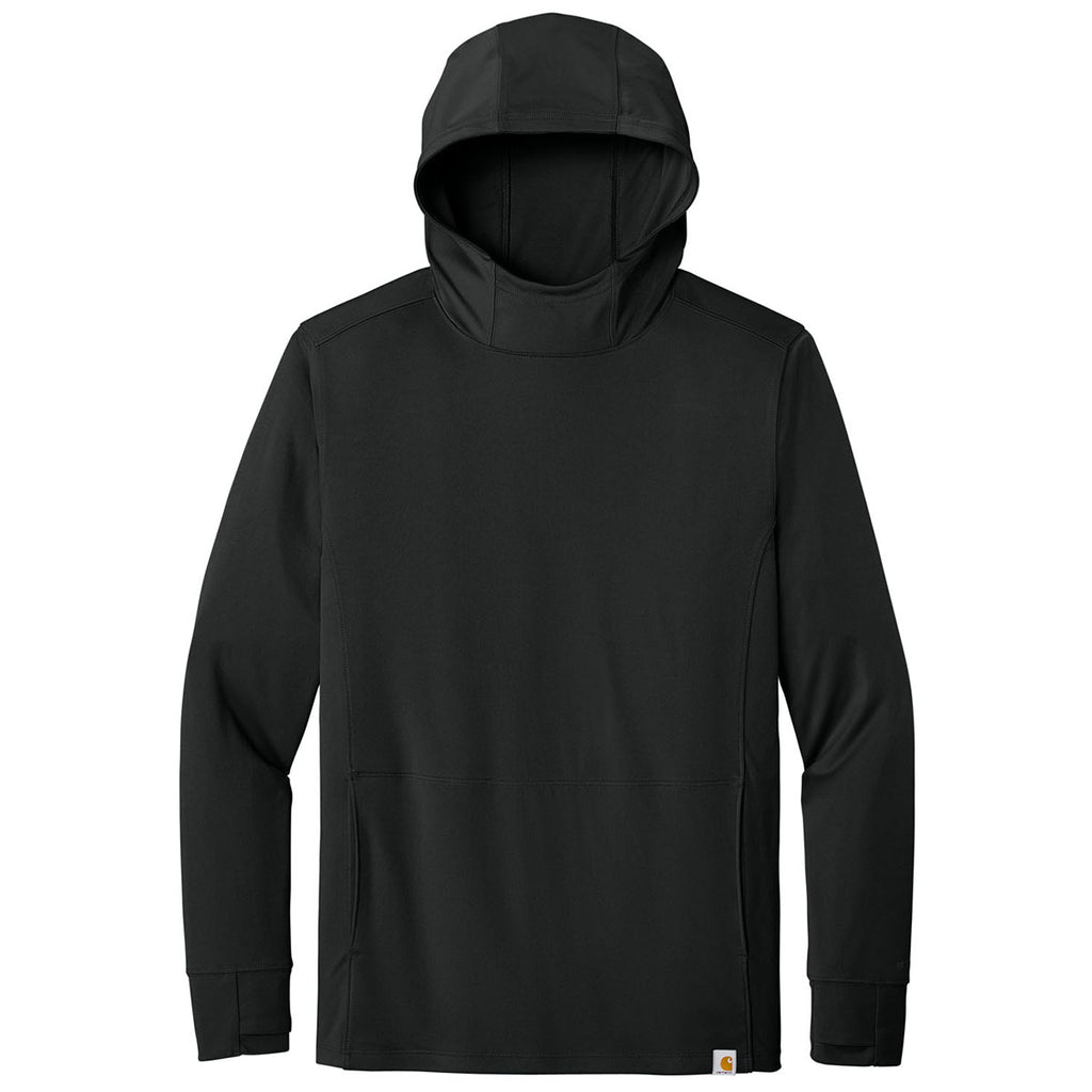 Carhartt Men's Black Force Sun Defender Long Sleeve Hooded T-Shirt with a custom design offers built-in sun protection with moisture-wicking technology. Designed to keep you cool and shielded, this shirt is ideal for outdoor work or recreational activities. The hood provides extra coverage, making it an excellent choice for those who need reliable UV defense and comfort on long days outside.This product can only ship within the United States and Canada.