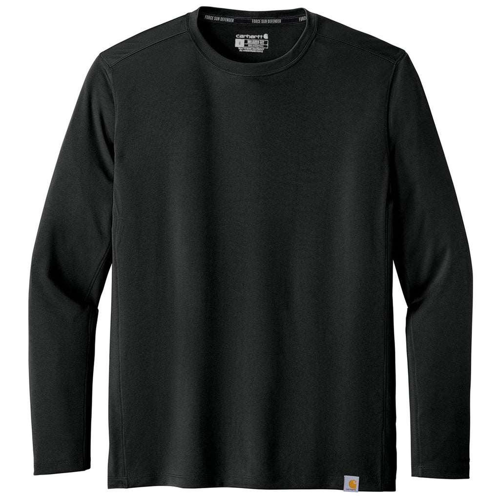 Try a custom Carhartt Men's Black Force Sun Defender Long Sleeve T-Shirt that combines durability with sun protection. Featuring moisture-wicking fabric and UV-blocking technology, this shirt keeps you cool and safe in outdoor conditions. Whether for work or recreation, its reliable performance and rugged design make it essential for those needing rugged, functional apparel.