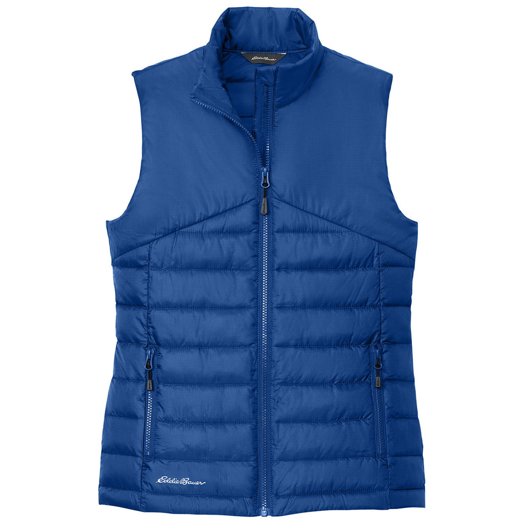 Eddie Bauer Women's Cobalt Blue Quilted Vest with a custom logo is a fun and fashionable way to stay warm. Worn as an outer or middle layer, this vest will keep you warm without creating much added bulk. The mock neck and full zip front make this great for hiking, running, or general day-to-day errands. Place an order today.