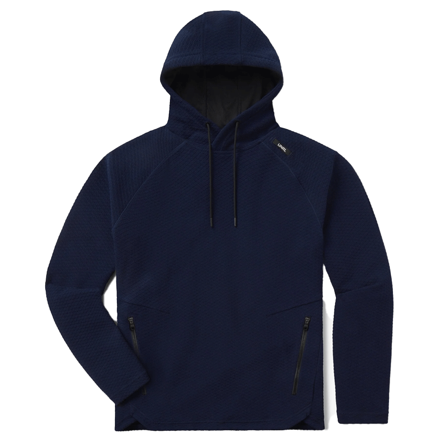Get moving with a custom UNRL Men's Midnight Navy Elevation Hoodie. This midweight hoodie has 4-way stretch, zippered hand pockets, moisture wicking, odor control, and wrinkle release to keep you looking and feeling great, whether going for a run, hanging with friends, or simply going about your busy day. Perfect as a gift or addition to your logoed apparel line.