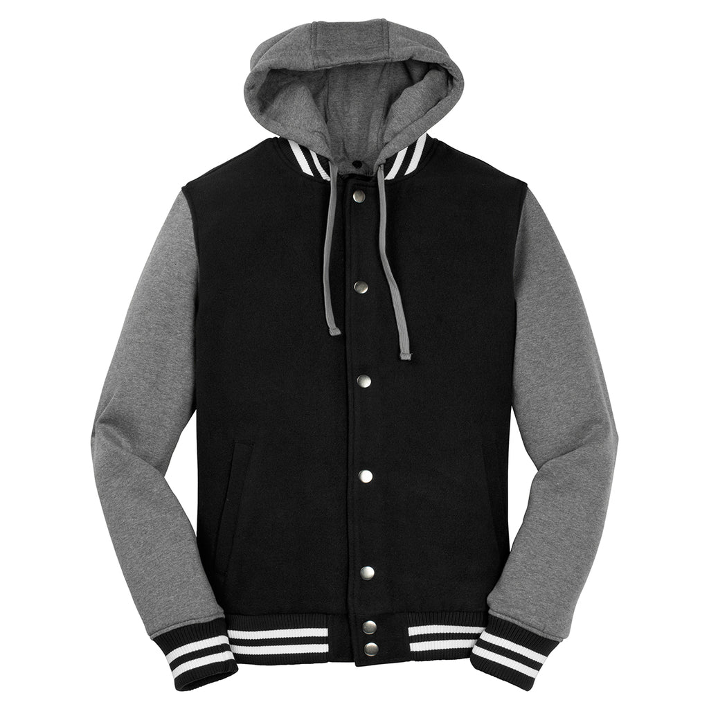 Sport-Tek Men's Black/Vintage Heather Insulated Letterman Jacket