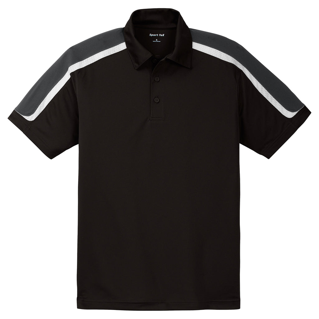 Sport-Tek Men's Black/Iron Grey/White Tricolor Shoulder Micropique Sport-Wick Polo