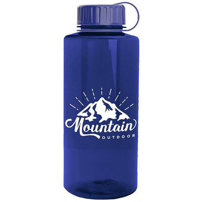 Garyline Transparent Navy Mountaineer Tritan Bottle with Tethered Lid - 36 oz.The minimum order for this product is 100 pieces.